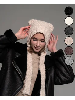 Шапка чепчик с завязками из букле с ушками