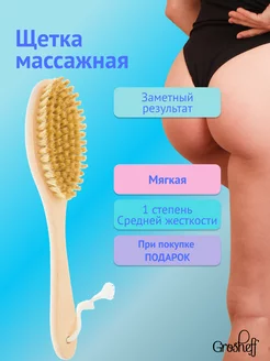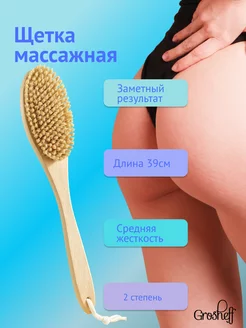 Антицеллюлитная щетка для тела и сухого массажа натуральная