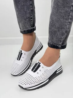 Мокасины женские демисезонные кеды кожаные на платформе