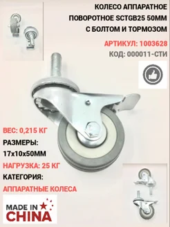 Колесо аппаратное поворотное SCtgb 25 50 мм с болт и торм