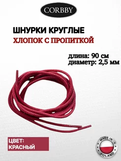 Шнурки круглые, красные 90см