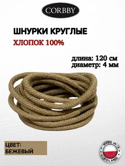 Шнурки круглые, бежевые 120 см