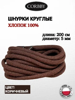 Шнурки круглые, коричневые 200 см