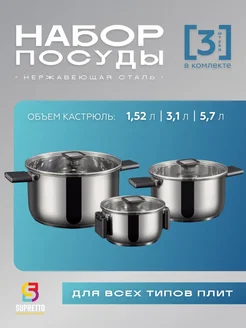 Набор кастрюль со складными ручками 3 шт