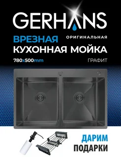 Мойка двойная Герханс 78х50 с коландером и дозатором