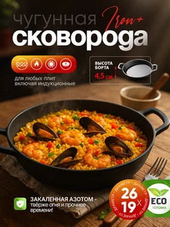 Сковорода жаровня чугунная 26 см глубокая с двумя ручками