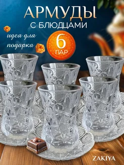 Стаканы турецкие стеклянные армуды с блюдцами набор 6шт