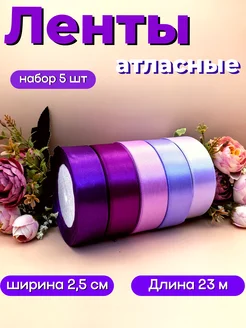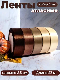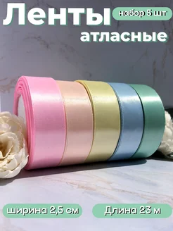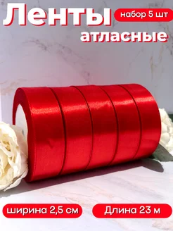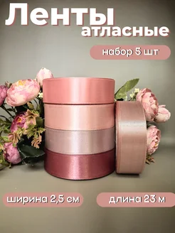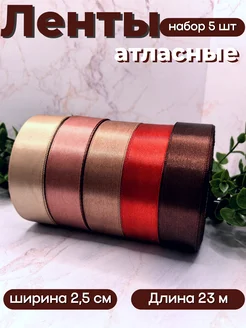 Лента атласная 2 5 см упаковочная для рукоделия набор 5 штук