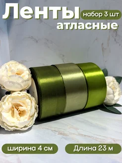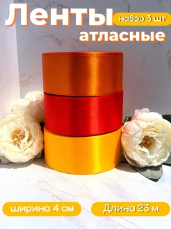 Лента атласная 4 см упаковочная для рукоделия набор 3 штуки