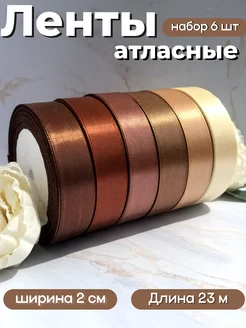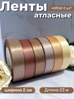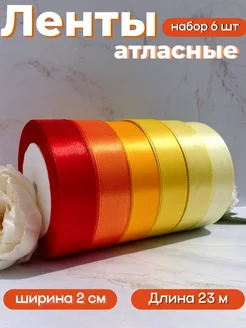 Лента атласная 2 см упаковочная для рукоделия набор 6 штук