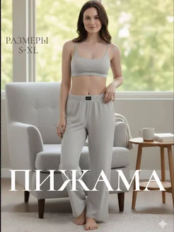 Пижама из хлопка - топ и брюки палаццо, домашний костюм