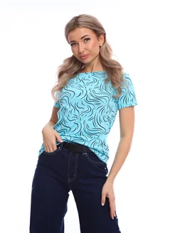 Футболка светло-бирюзово-чёрная 100% хлопок