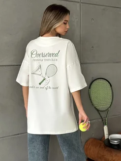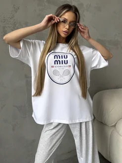 Плотная белая оверсайз футболка принт Tennis Club MIU MIU