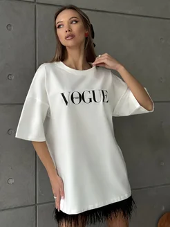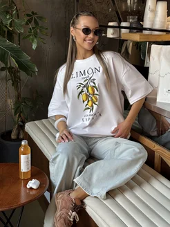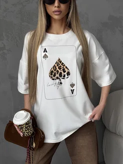 Плотная белая оверсайз футболка с принтом модница с помадой