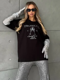 Плотная черная оверсайз футболка с принтом Prosecco Club