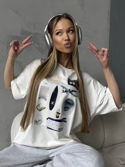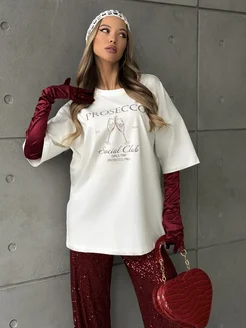 Плотная молочная оверсайз футболка с принтом Prosecco Club
