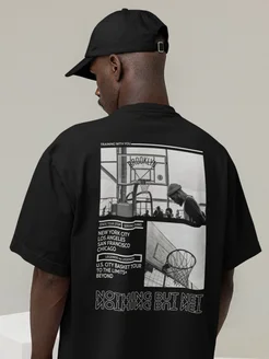 Плотная черная оверсайз футболка с принтом Basketball