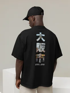 Плотная черная оверсайз футболка с принтом цветной Osaka