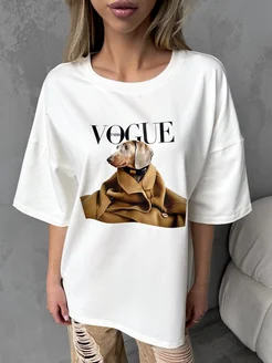 Плотная молочная оверсайз футболка с принтом vogue paris dog