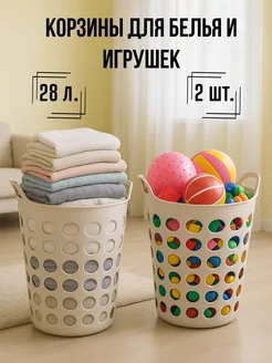 Корзины для белья и игрушек с ручками гибкие 28 литров