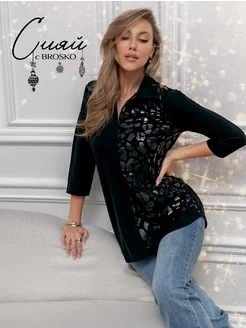 Лонгслив оверсайз нарядный с длинным рукавом
