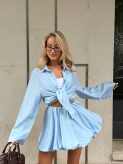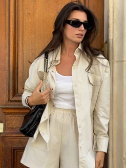 Костюм летний с брюками и рубашкой в пижамном стиле