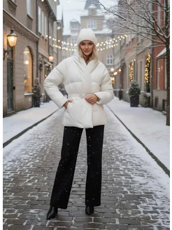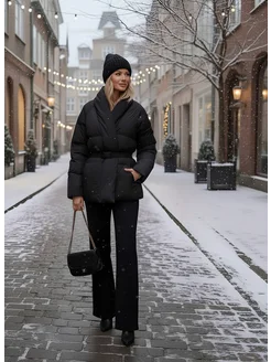 Пуховик кимоно под запах на поясе