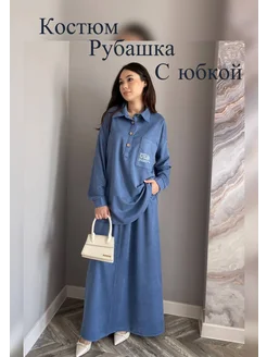 костюм домашний спортивный больших размеров с юбкой хлопок