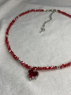 Чокер на шею сердцем из алмазного стекла бижутерия