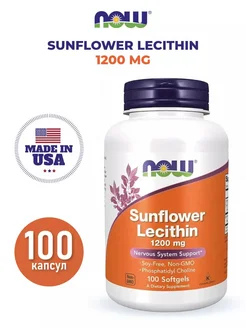Sunflower Lecithin, Подсолнечный Лецитин 1200 мг, 100 капсул