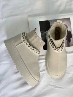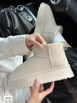 Угги с мехом на толстой подошве с шнуровкой ugg