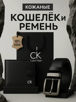 Подарочный набор CK кошелек и ремень натуральная кожа