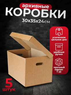 коробки для хранения с крышкой 30х35х24 см (5 шт)