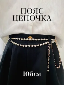 Пояс - цепочка комбинированный двойной жемчуг, 105 см