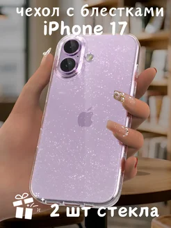 Чехол на iPhone 17 с блестками+ 2 Защитное стекло