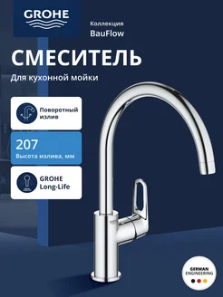 Смеситель Rebris E 110 со сливным гарнитуром, хром