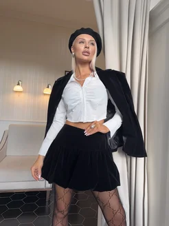 Бархатная мини юбка баллон