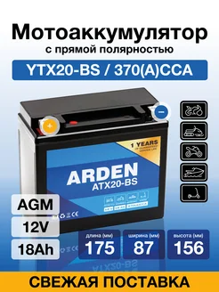 Аккумулятор для мотоцикла AGM 12В 18Ач СТ1218 YTX20-BS