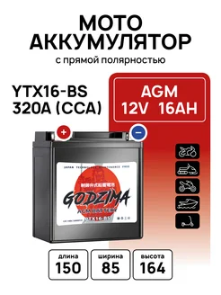 Аккумулятор для мотоцикла AGM 12В 16 Ач СТ1216.1, YTX16-BS