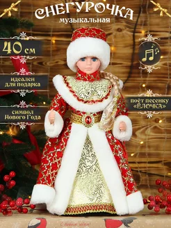 Снегурочка под елку музыкальная "Красная с косой" 40см