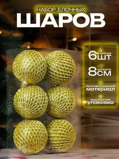 Елочные шары золотистые 8 см, набор 6 шт