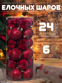 Елочные шары набор 6 см, 24 шт, бордовый