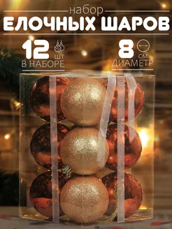 Елочные шары оранжевые 8 см, набор 12 шт
