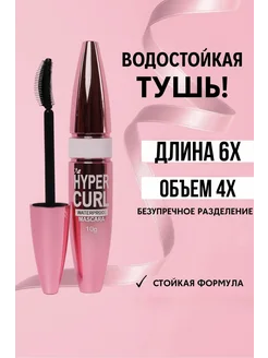 Тушь для ресниц черная влагостойкая удлиняющая объем