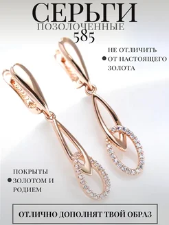 Серьги бижутерия позолоченные с фианитами