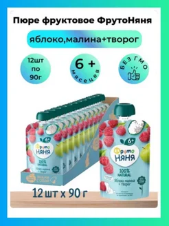 Пюре фруктовое яблоко,малина+творог 12 шт по 90 гр