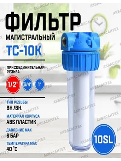 Фильтр для воды магистральный (10SL, 1 2", + картридж)