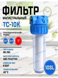 Фильтр для воды магистральный (10SL, 1", + картридж)
