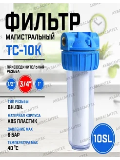 Фильтр для воды магистральный (10SL, 3 4", + картридж)