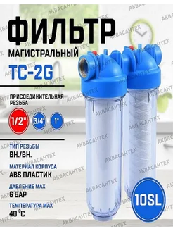 фильтр для воды двойной ( 1 2", 10SL, +2 картриджа)